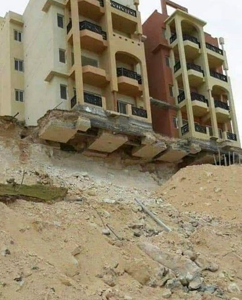 - Edifício com sapatas penduradas devido a desbarrancamento |