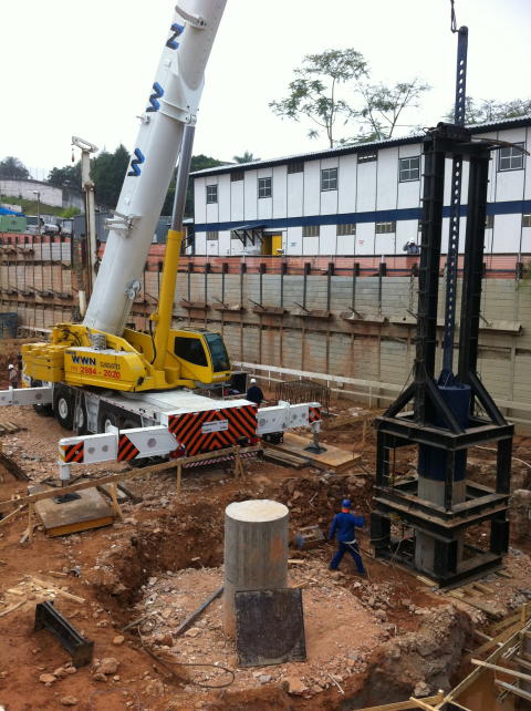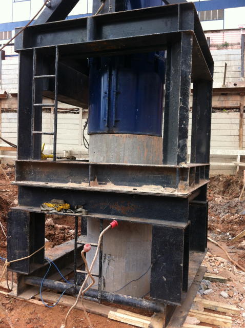 - Detalhe do martelo sobre o bloco de coroamento da estaca. |