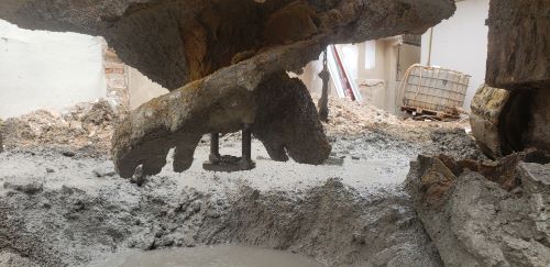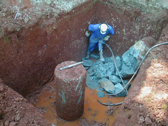 - Quebra de estaca Hélice, (até 50 cm antes do arrasamento) com auxílio de martelete. |