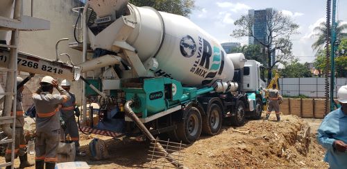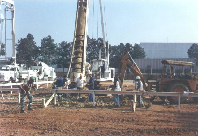 | - Execução de uma estaca : Caminhão Betoneira, Bomba de concreto e colocação da armação. A maquina retro-escavaderia faz a limpeza do material escavado e trazido pela hélice. | ||