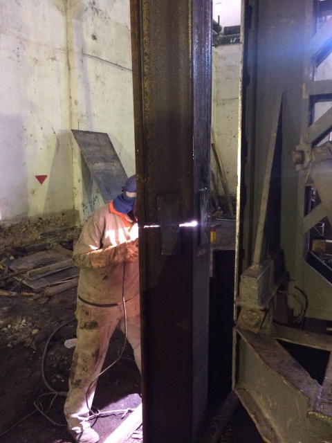 | - Detalhe da Cabeça do perfil de carga, com chapa soldada e arranques. | ||