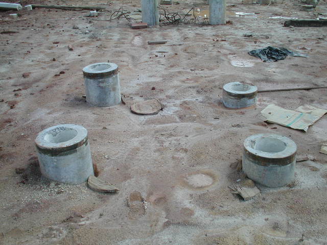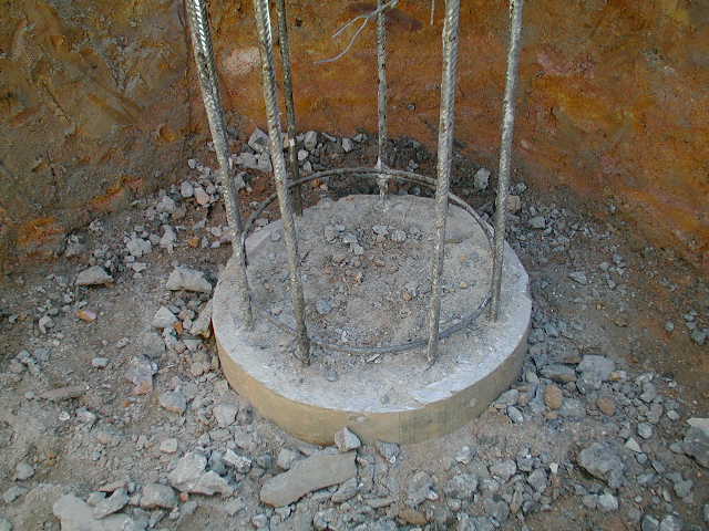 | - Tirando a "nega" em uma estaca pré-moldada. Abaixo, detalhe da emenda. | ||