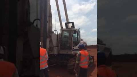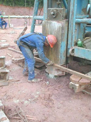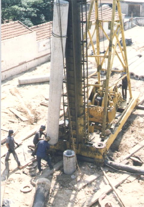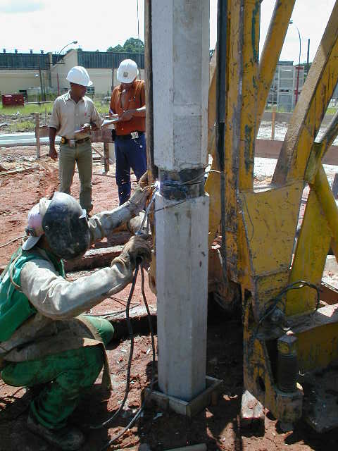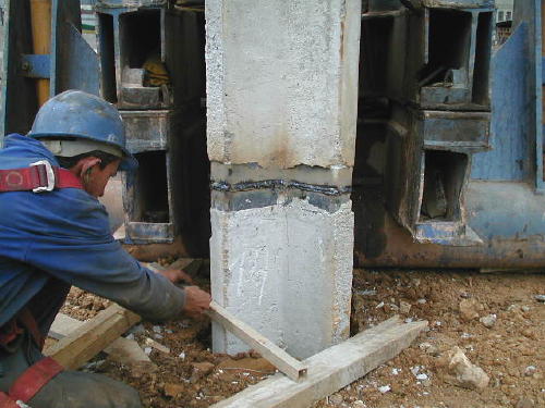 | - Posicionamento de segmentos de estaca para emenda | ||