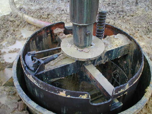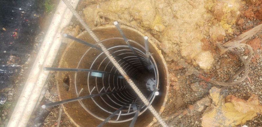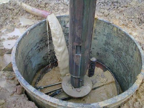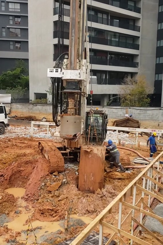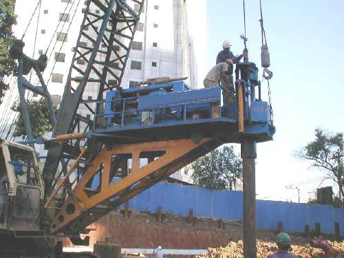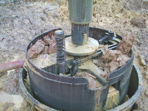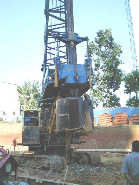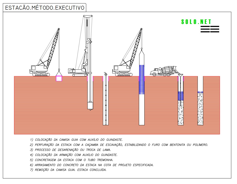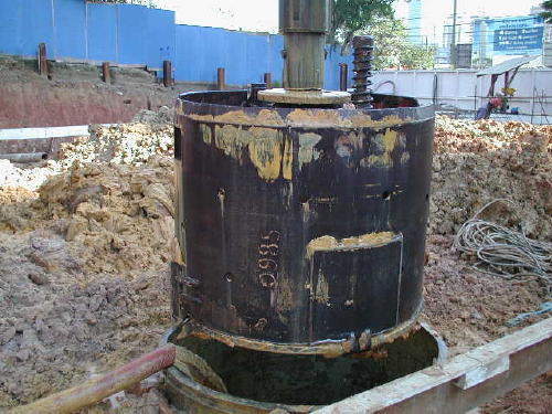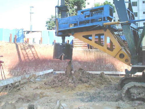 | - Detalhe da lama bentonítica preenchendo o furo, e da camisa metálica (guia da caçamba). | ||