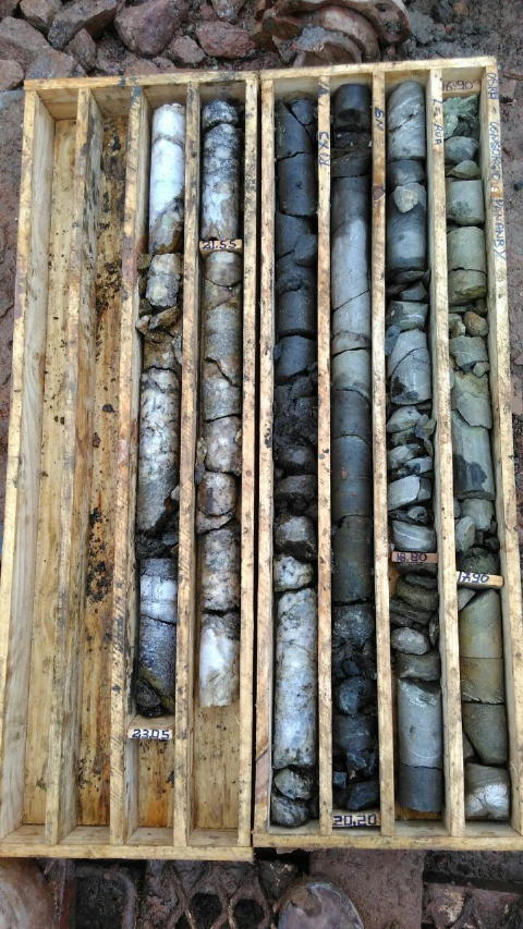 | - Amostras da sondagem rotativa, nas profundidades indicadas. | |||