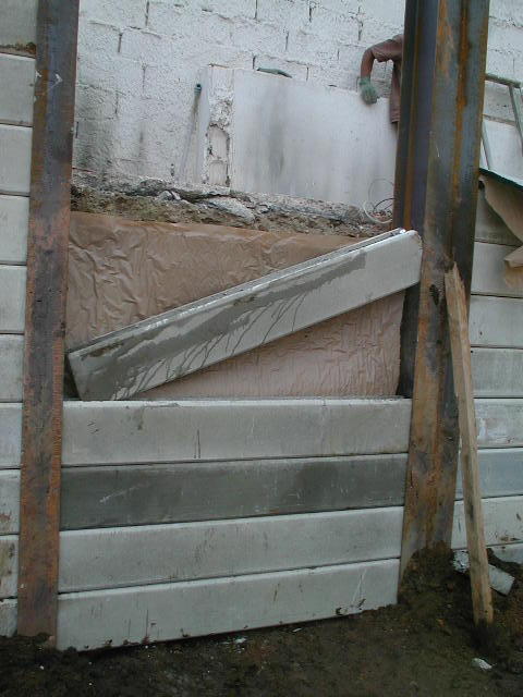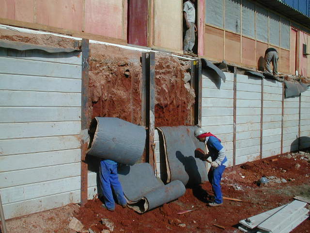 Drenagem em Cortinas Pré-moldadas É possível executar a drenagem por trás das cortinas pré-moldadas, com a utilização de geodrenos. Veja abaixo algumas fotos da drenagem: