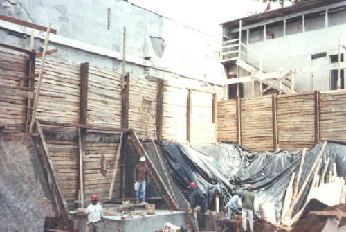 | - Prancheamento de madeira, com talude do 2o.sub-solo tratado com negrolim. |