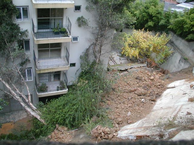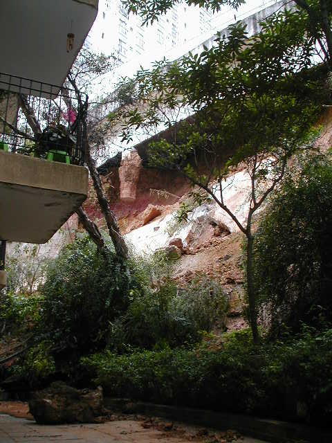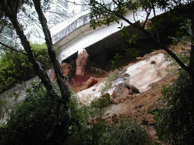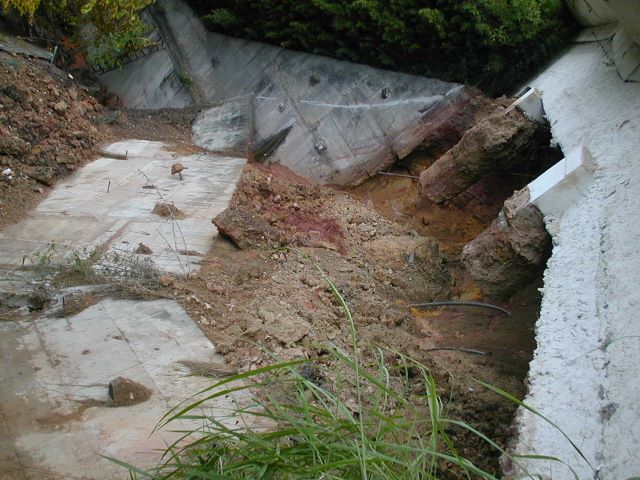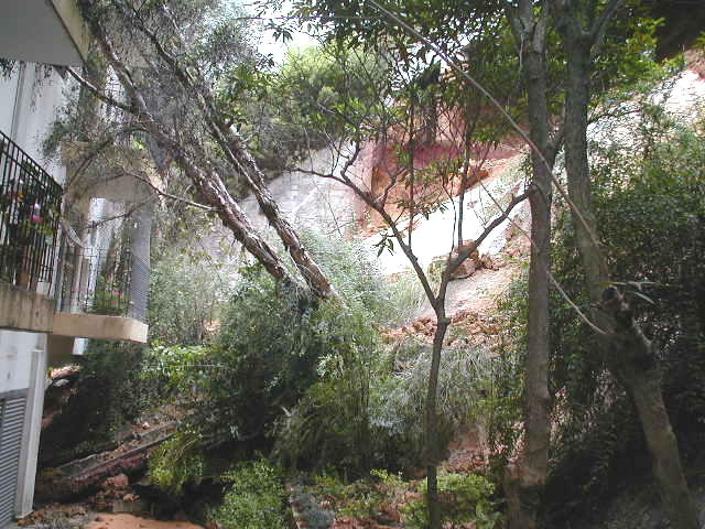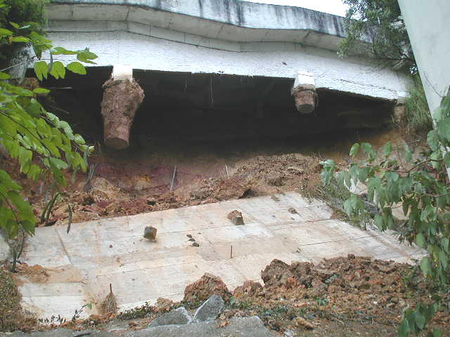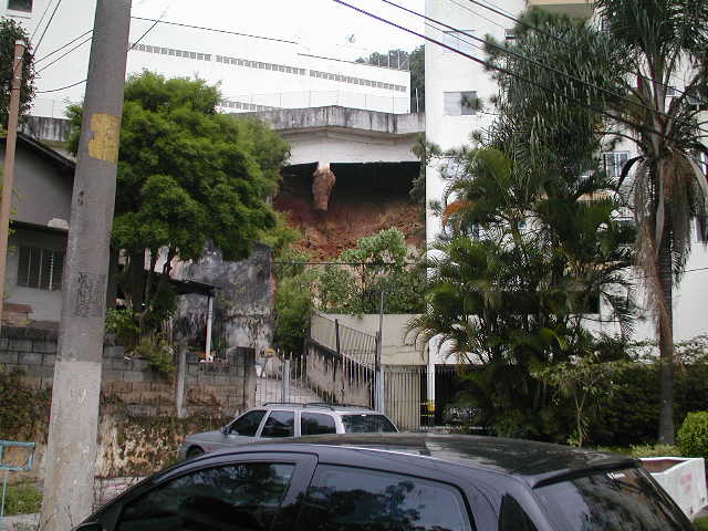 | - Foto em 11/09/2009 -Colapso da cortina de do talude, vista pela rua dos fundos. | |