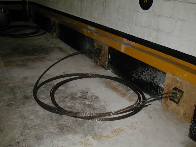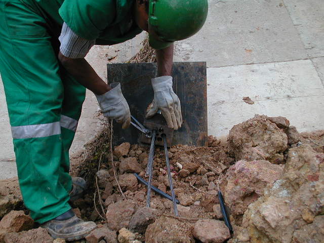 | - Foto em 17/09/2009 - Ancoragem dos cabos na rampa. | |