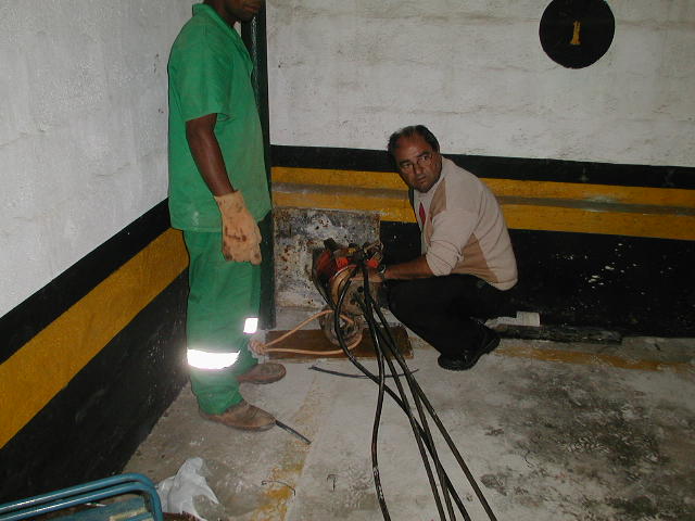| - Foto em 17/09/2009 - Perfuação na laje rampa suspensa. | |