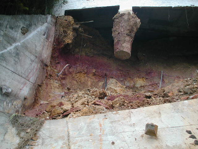 Foto em 11/09/2009 -Colapso da cortina atirantada, cordoalhas aparecem