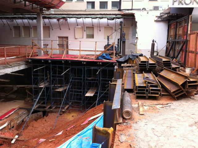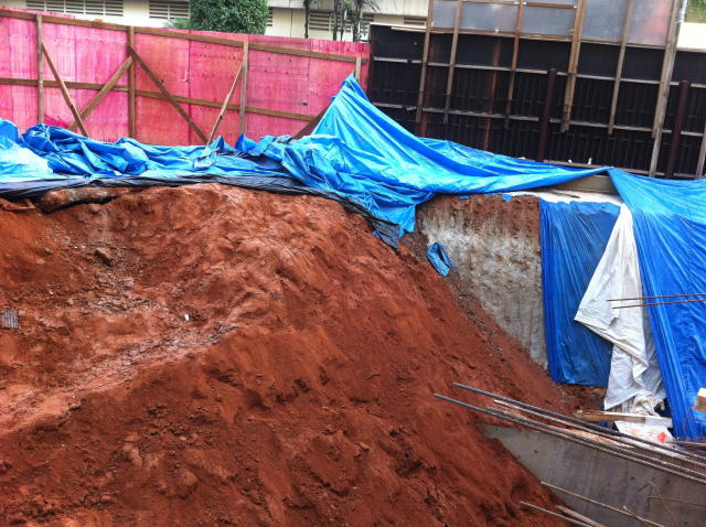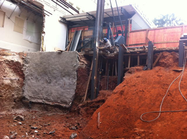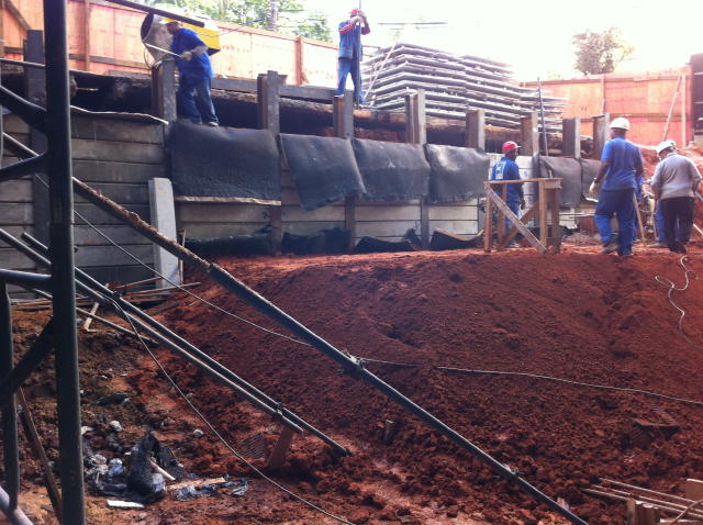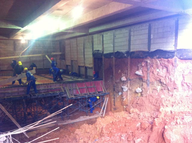 | - Foto em 12/08/11 - Laje do Térreo travada, e dando sequencia a cortina e travamentos. | |