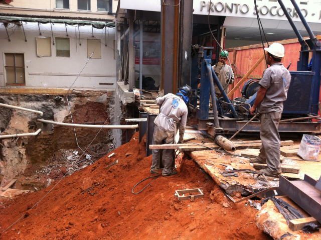 | - Foto em 02/06/11 - Dificuldades na cravação ao longo do trecho afetado. | |