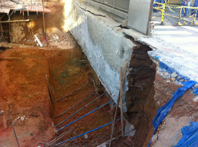 - Foto em 31/04/11 - Muro em solo grampeado, entrando em colapso. |