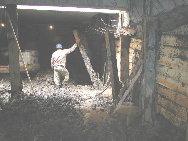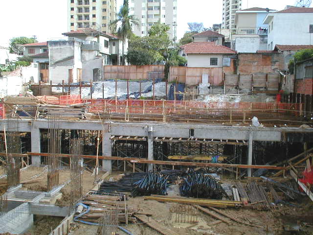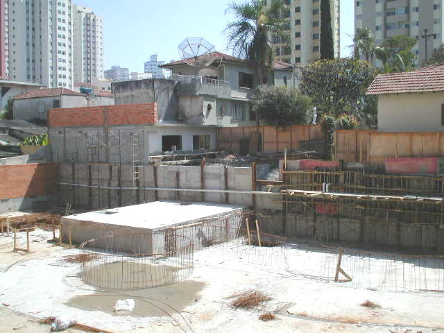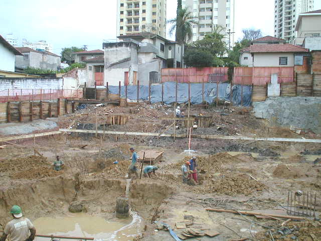 | - Foto em 14/02/03 - Escavação de blocos e quebra de cabeça de estacas (Franki), periferia. | |