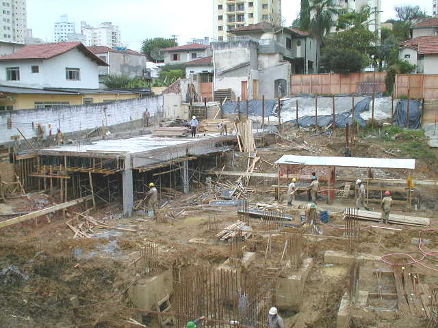 | - Foto em 08/04/03 - Laje da periferia avançando em direção aos fundos. | |