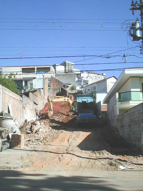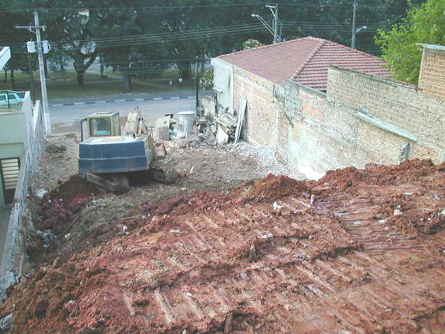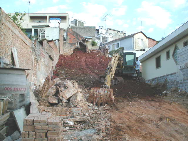 | - Foto em 19/04/02 - Escavação para execução do muro de contenção, põe abaixo vizinho dos fundos. | |