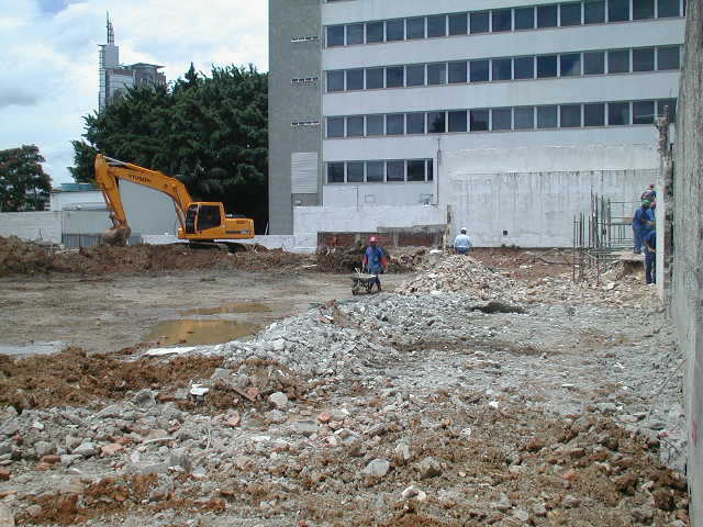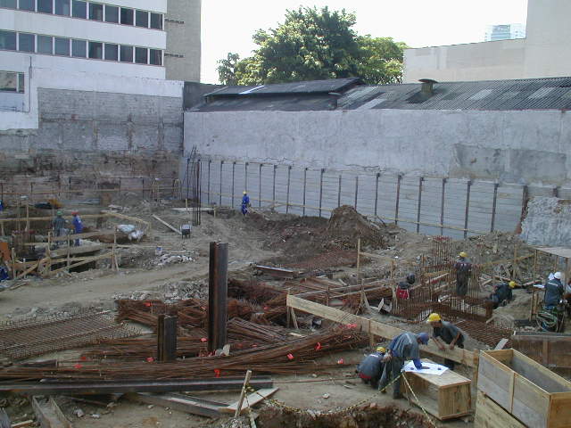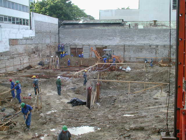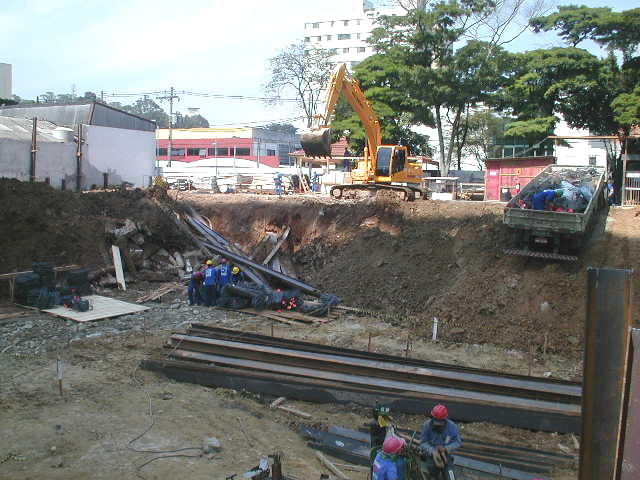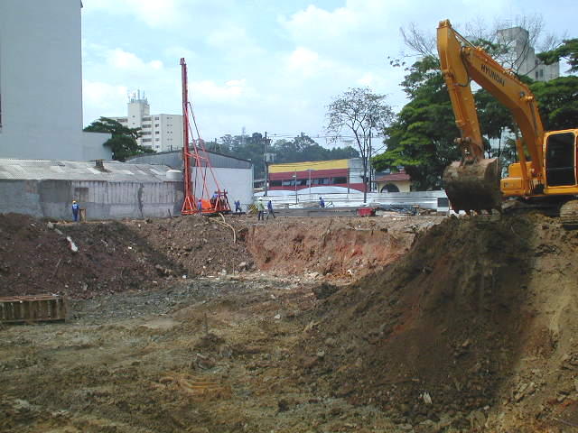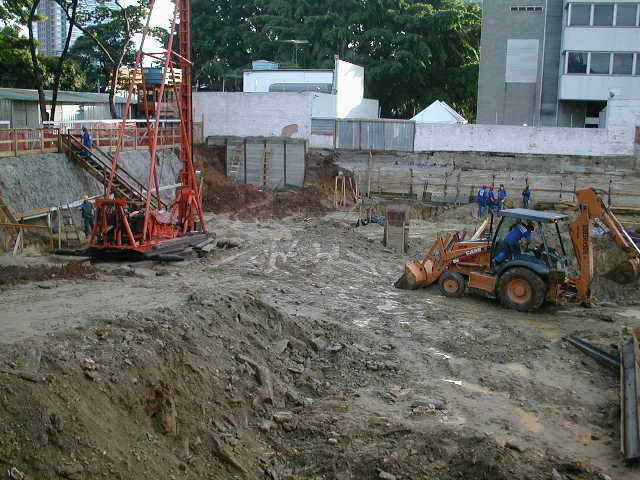 | - Foto em 10/02/2009 - Cravando na divisa lateral direita e seguindo com escavação. | |