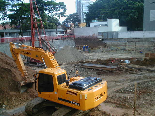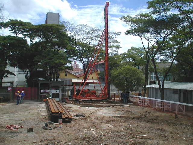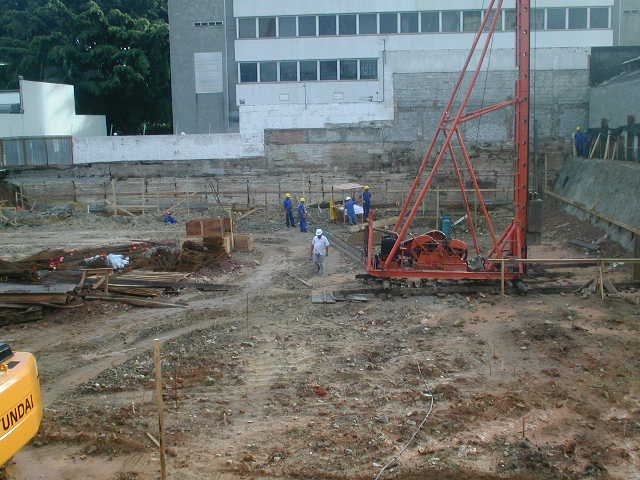 | - Foto em 26/02/2009 - Escavação de sapatas e cravação de perfis para fundação. | |