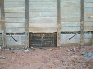 | - Foto em 12/05/04 - Detalhe do nichos com tirantes já incorporados a cortina. | |