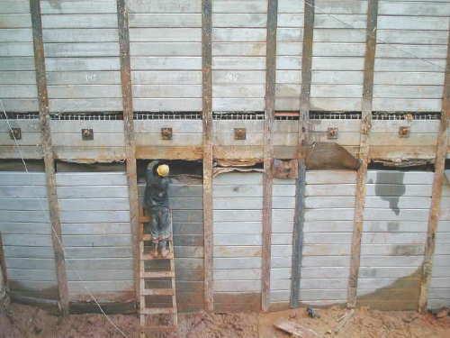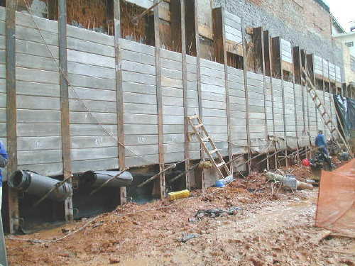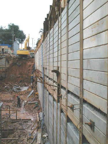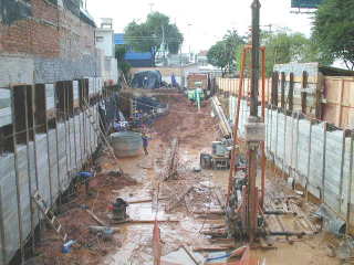 | - Foto em 19/04/04 - Perfis cravados e executando cortina até o 1o.SS. | |
