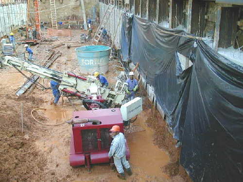 | - Foto em 27/04/04 - Ancoragens em andamento. | |