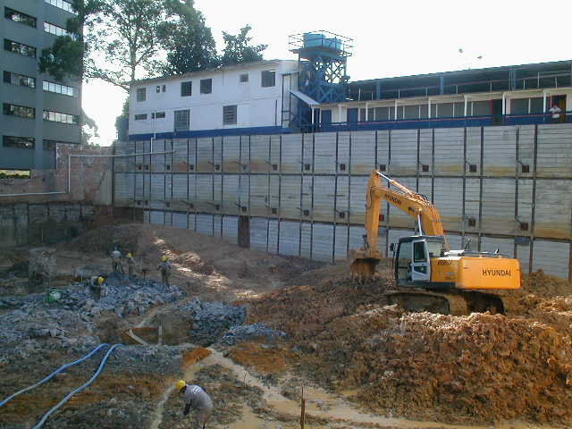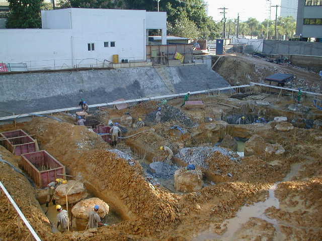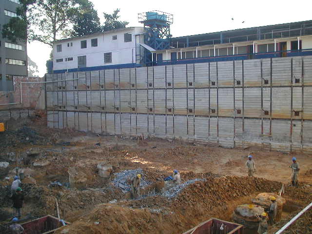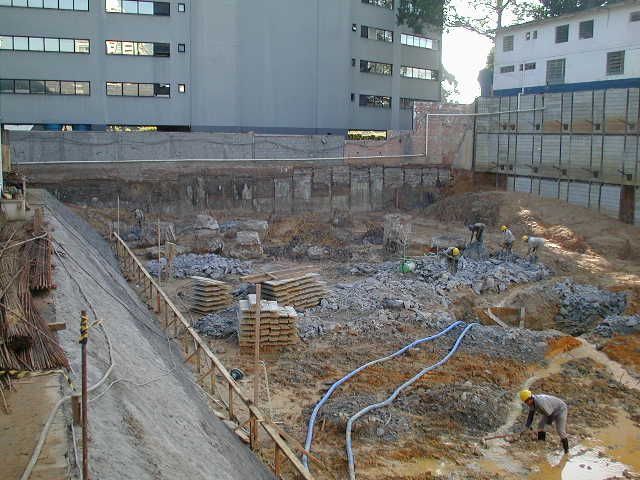 | - Foto em 10/04/08 - Escavação para o 2o.SS e execução das cortinas dos fundos. | |