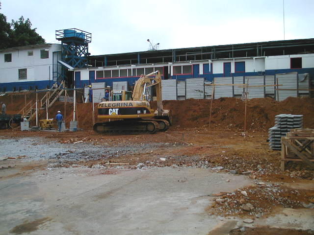 | - Foto em 25/09/07 - Início da cravação de perfis metálicos na periferia. | |