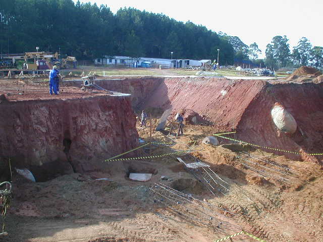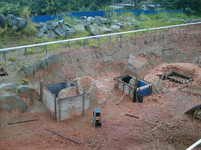 Foto em 08/05/2009 - Escavação e concretagem de tubulões. |