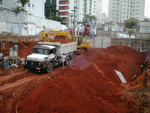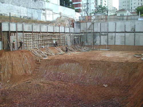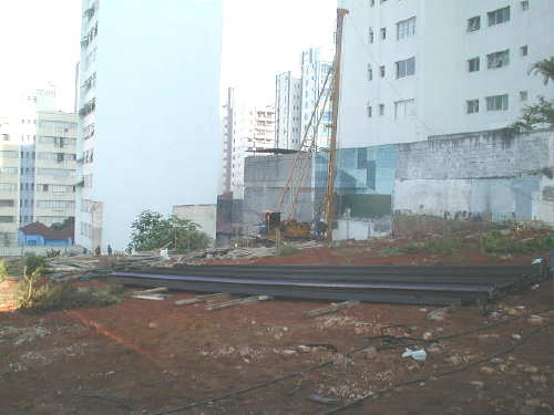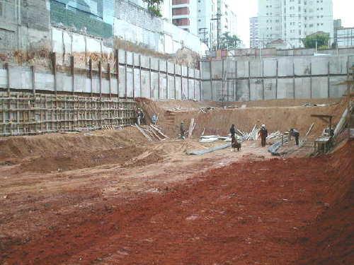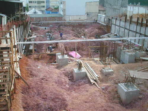 | - Foto em 20/08/02 - Cortina da R.Alves Guimarães sendo escavada até o 2o.Sub Solo. | ||