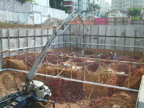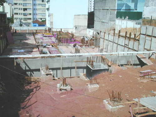 | - Foto em 15/08/02 - Cortina da R.Alves Guimarães concretada até o 1o.Sub-Solo | ||
