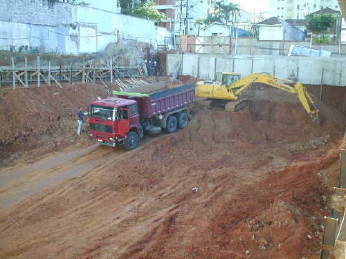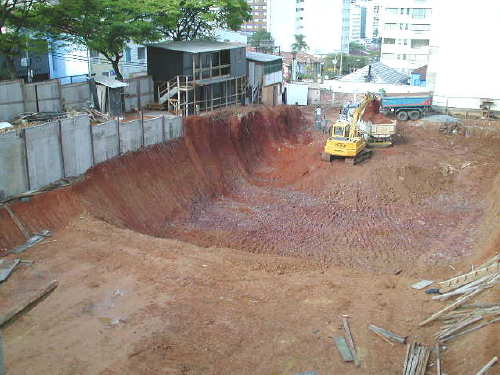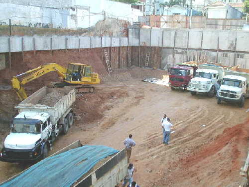 | - Foto em 05/09/02 - Escavação concluída. Fechando cortinas da lateral direita - 3o.SS. | ||