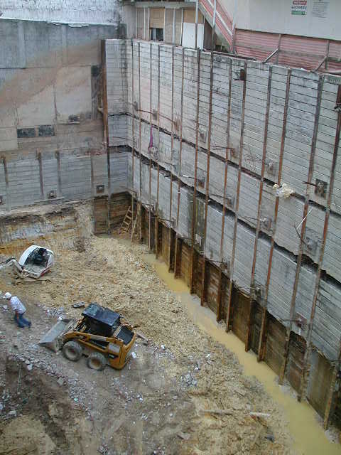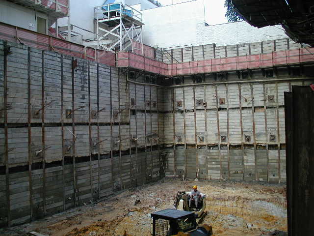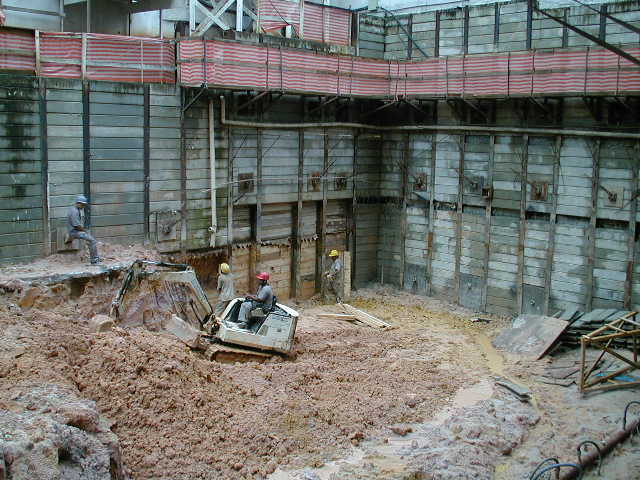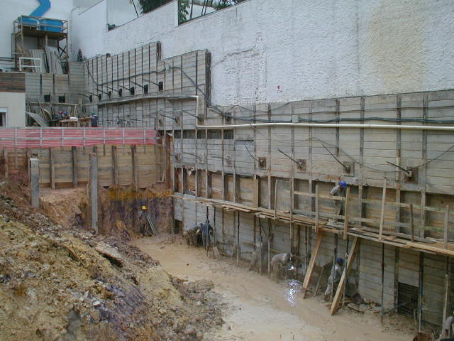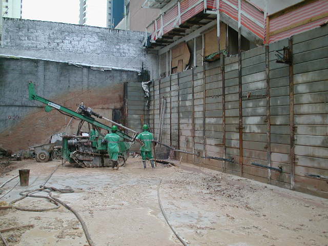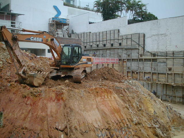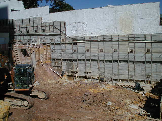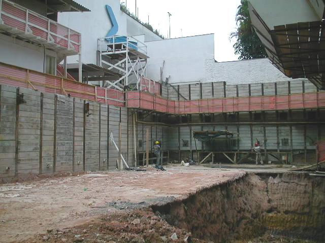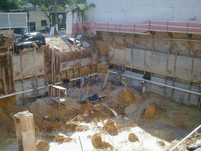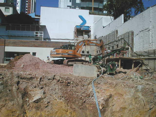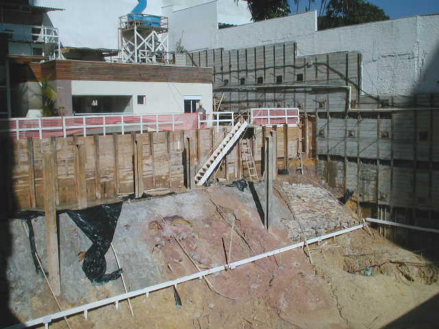 Foto em 21/01/2010 - Escavando para a 2a. linha de tirantes nos fundos. |