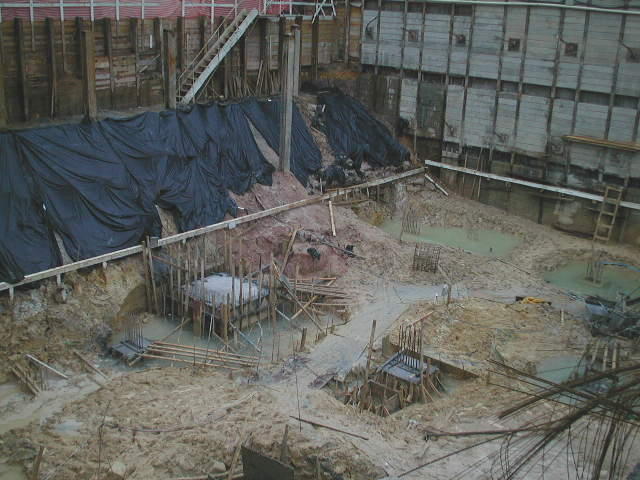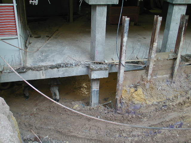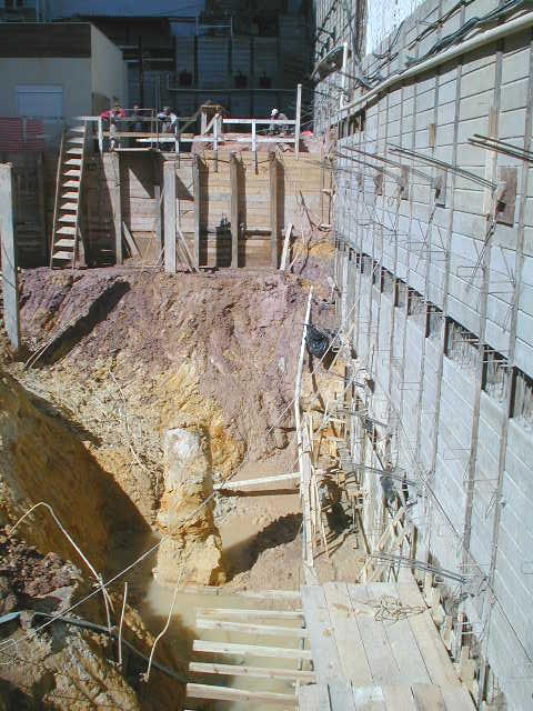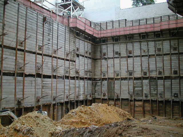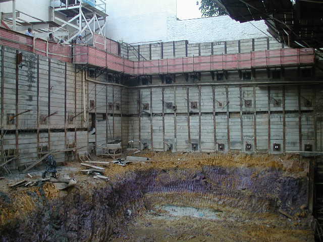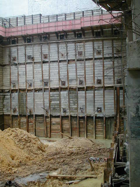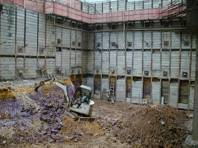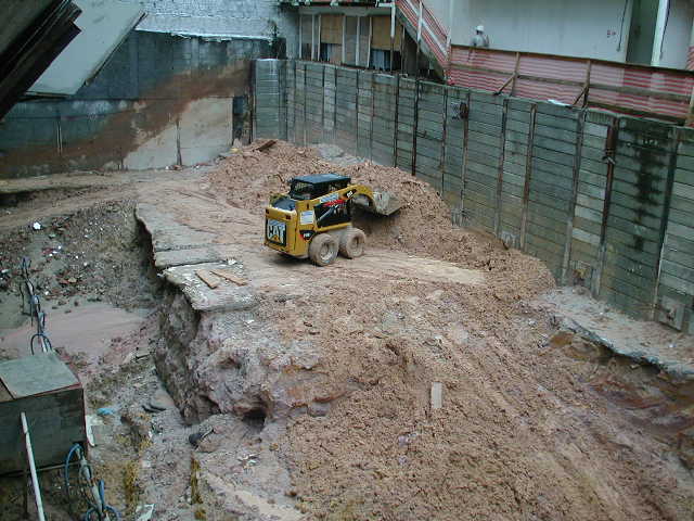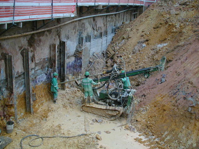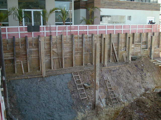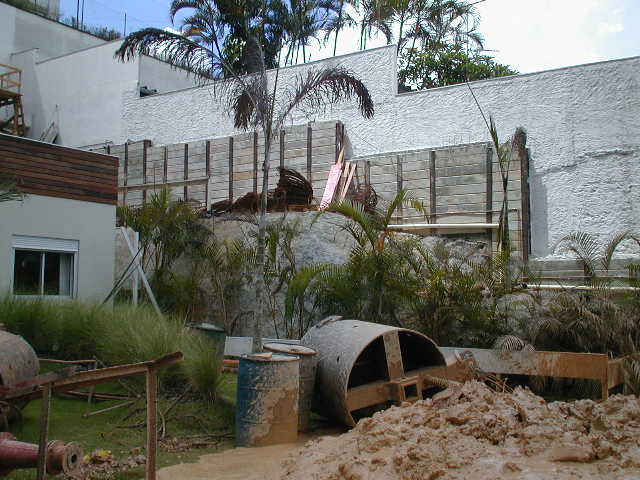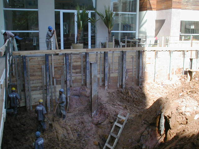 Foto em 21/01/2010 - Escavando para a 2a. linha de tirantes nos fundos. |