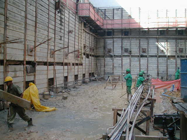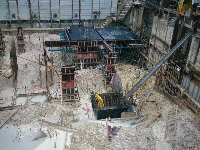 Foto em 15/04/2010 - Concretagem das cortinas do 1SS - 3a. e 4a. linha