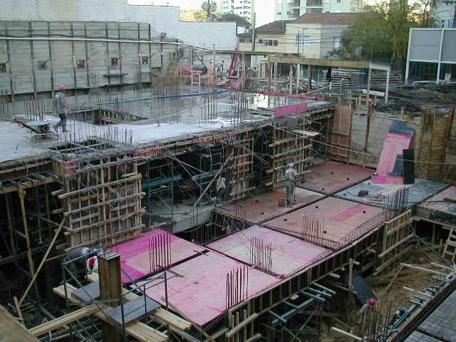 Foto em 17/08/2009 - Lajes sendo concretadas. |