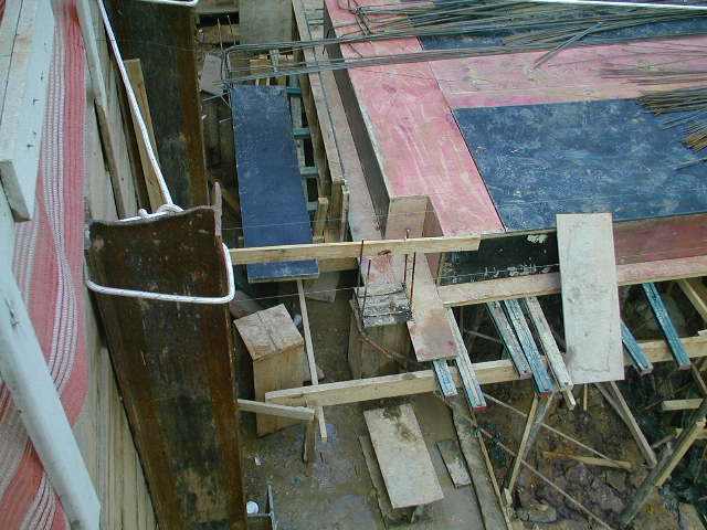 Foto em 12/02/2010 - Instalando a 2a. linha de tirantes nos fundos. |