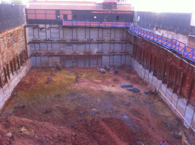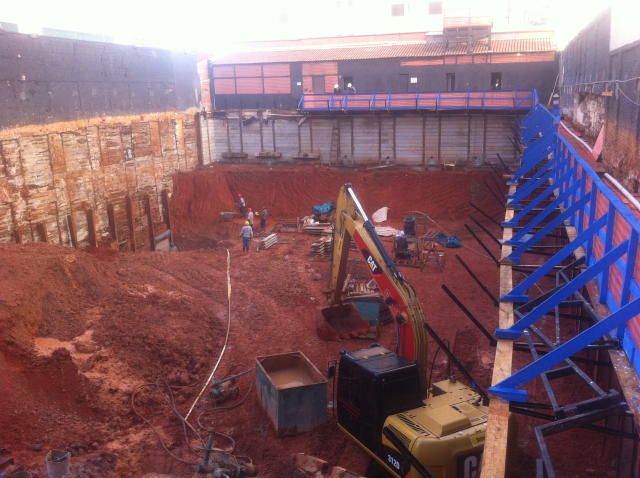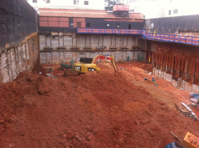 | - Foto em 16/04/2015 - Montagem da cortina até o 1o.SS nos fundos, e escavação geral. | |