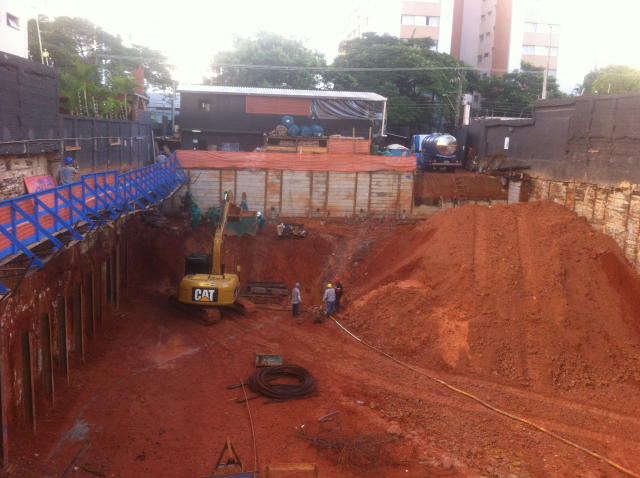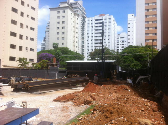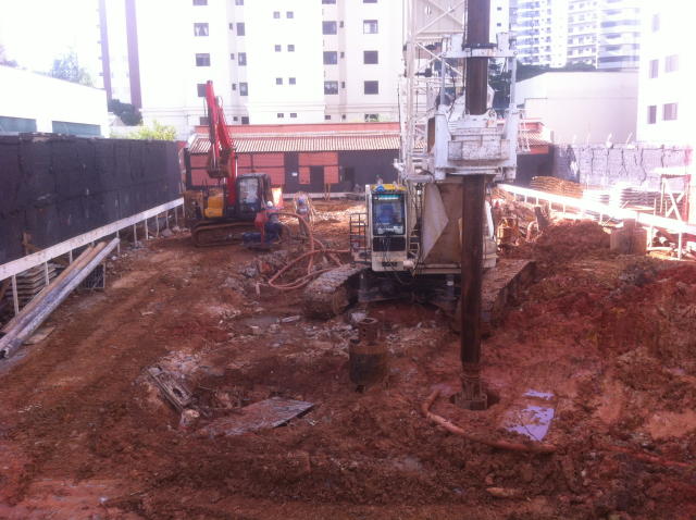 | - Foto em 26/03/2015 - Execução da fundação em Estacão a partir da cota da Rua AMS. | |