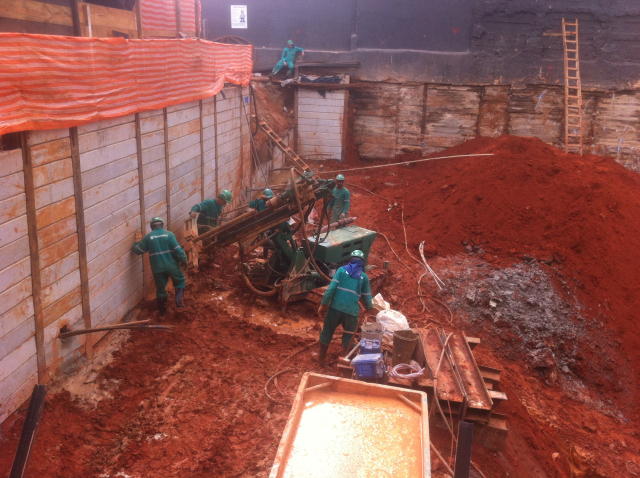 | - Foto em 26/05/2015 - Execução da 2a.linha de ancoragens. | |