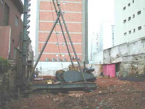 | - Foto em 10/04/03 - Seguindo com cortina e escavação para o 3o.Sub-Solo. | |