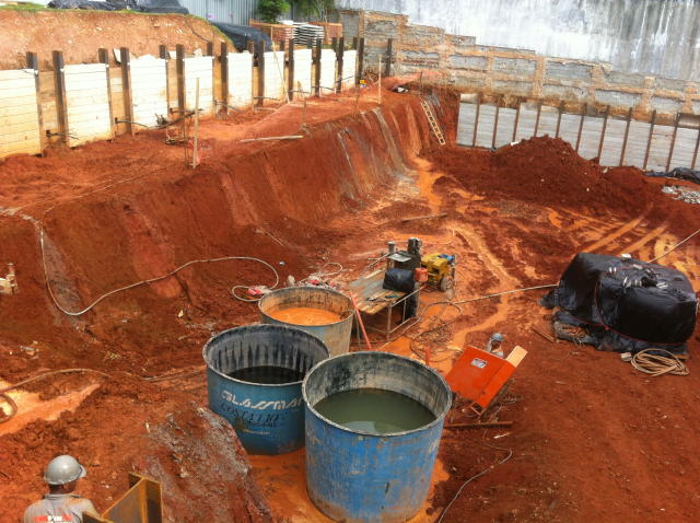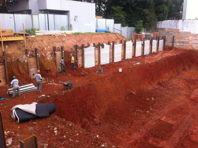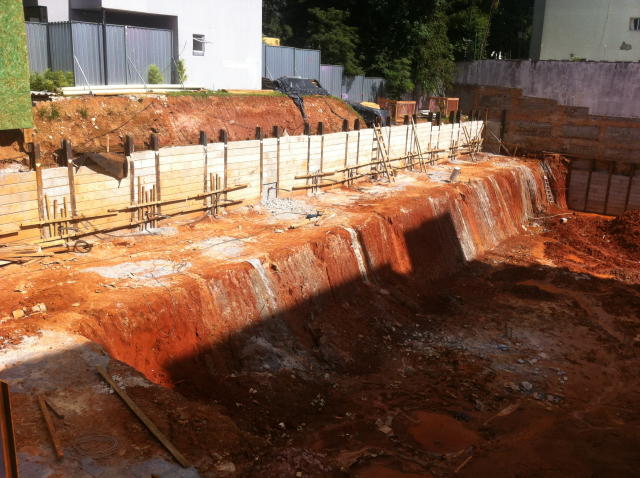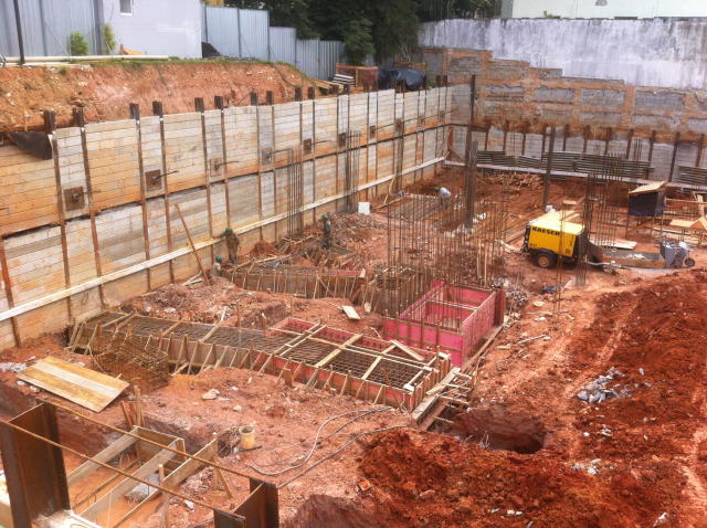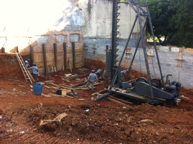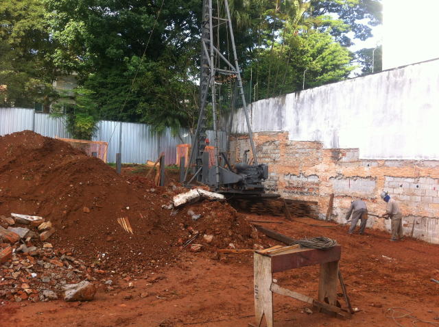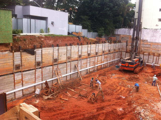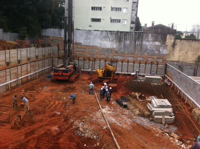 | - Foto em 24/03/2014 - Cortinas do 2o.SS concluidas e inicio das Fundações em Hélice Continua. | |