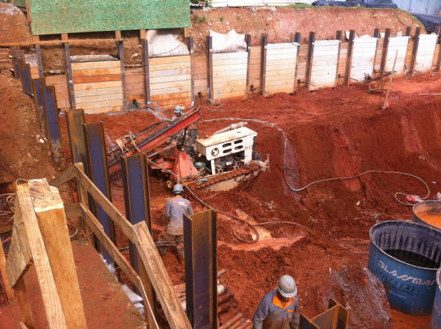 | - Foto em 25/02/2014 - Execução dos tirantes. | |