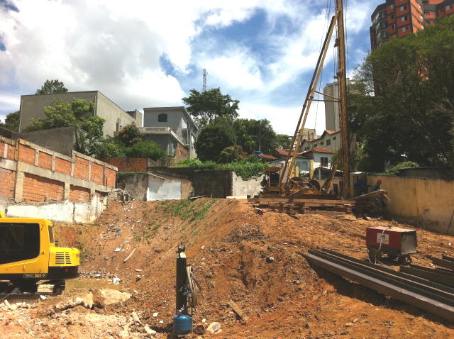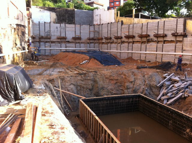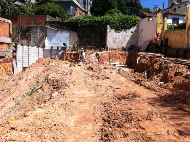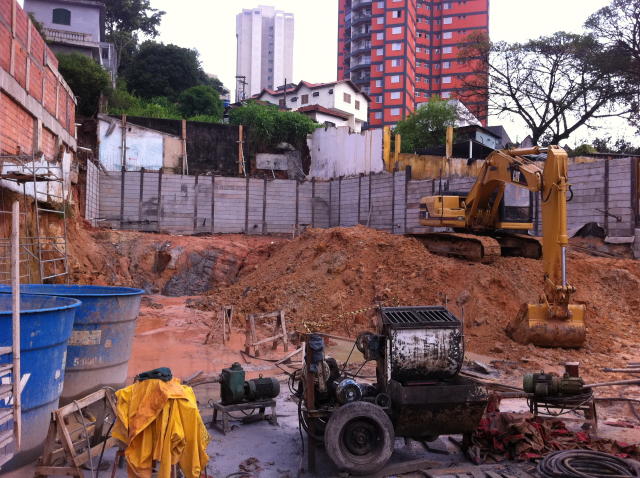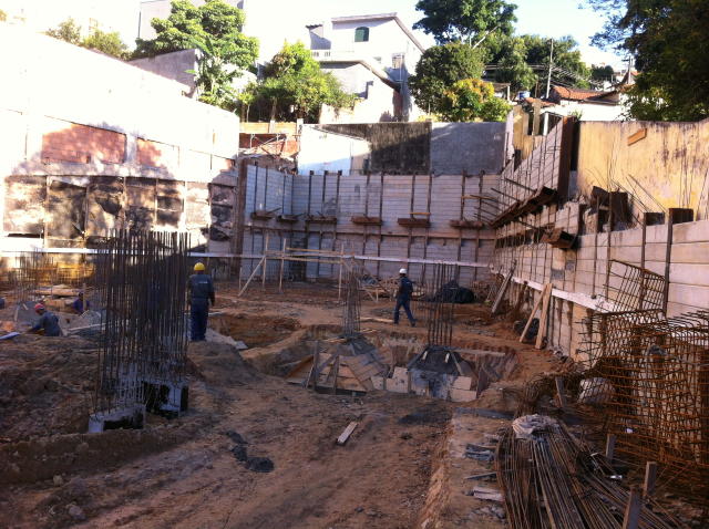 | - Foto em 05/03/2012 - Escavação e execução das cortinas do SSolo, e inicio das sapatas de fundação. | |