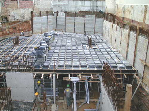 em 22/01/02 - Preparando laje do 1o. Sub-Solo. |
