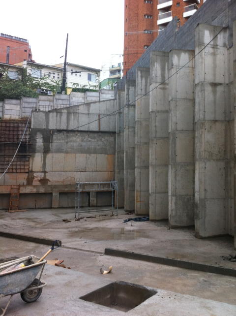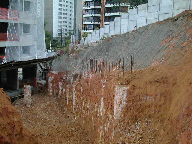| - Foto em 15/10/10 - Muro em tubulões armados. | |