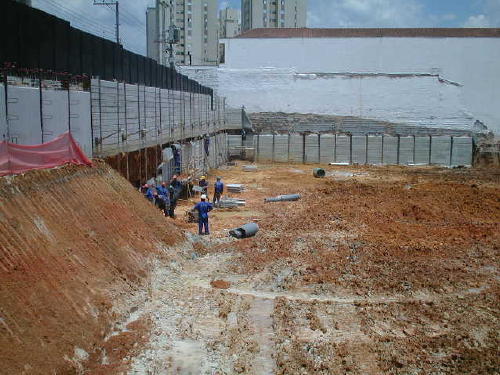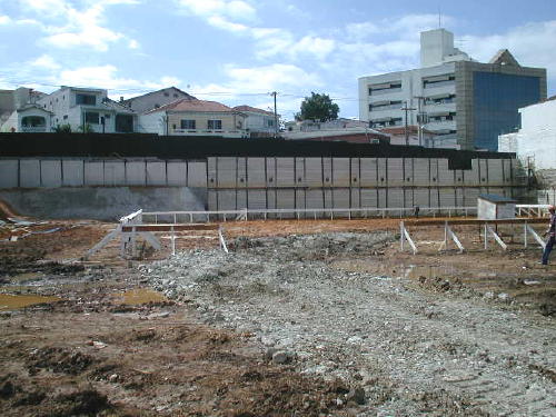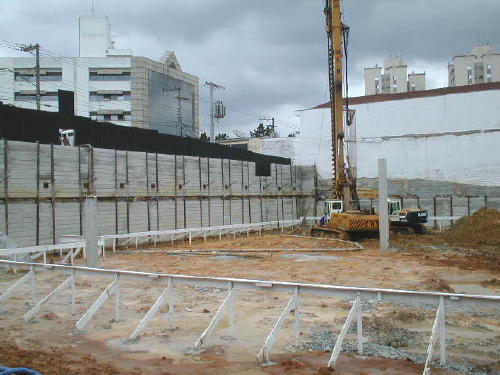 | - Foto em 29/08/06 - Cravação de perfis metálicos na periferia. | |