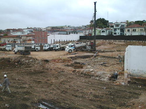 | - Foto em 06/10/06 - Início da cravação das estacas pré-moldadas. | |