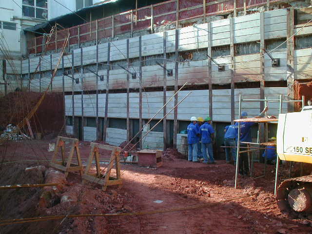 | - Foto em 06/02/07 - Perfurando tirantes da 2a.linha. | |