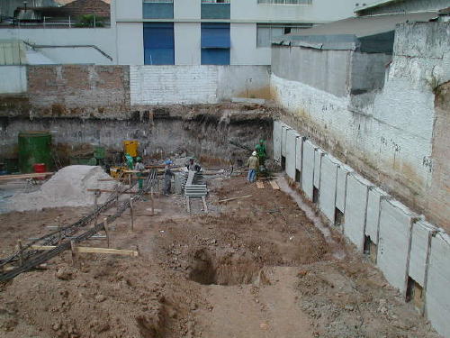 | - Foto em 18/10/06 - Escavação concluída. Iniciando sapatas do elevador. | |